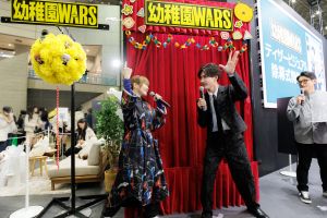 「『幼稚園WARS』、TVアニメ化決定!」の掛け声とともに、熊谷さんがティザービジュアルをお披露目し、種﨑さんがくす玉割りに挑戦。会場は大きな盛り上がりを見せます。